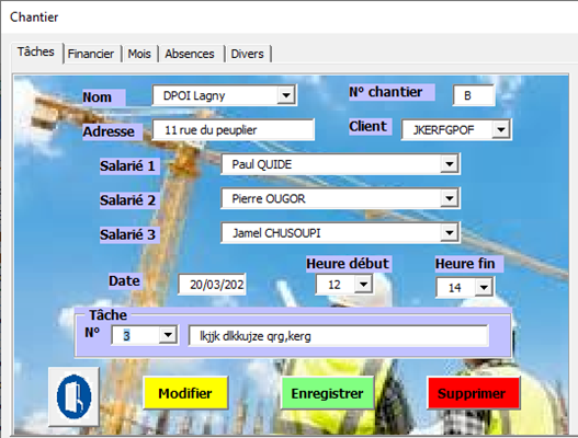 It enables to manage the construction site staff with up to 10 salaries teams, with :